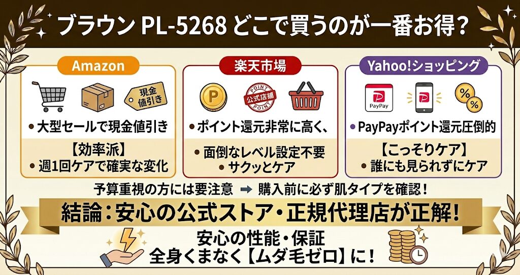 ブラウン PL-5268は数万円する高価な買い物。「1円でも安く買いたい!」と思うのは当然ですよね。